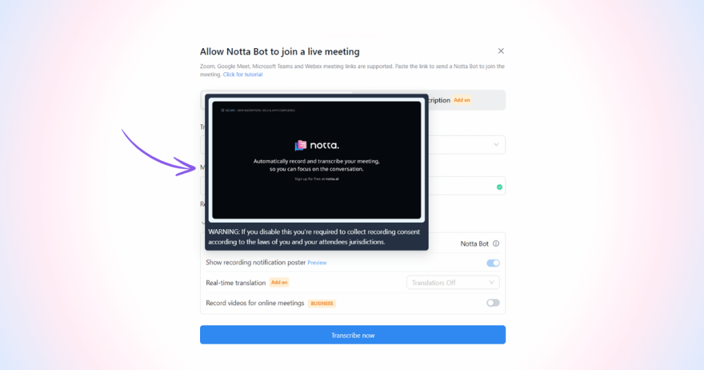 Notta est un outil complet de transcription automatisée et de prise de notes. Il transforme vos réunions ou interviews en texte exploitable dans plus de 50 langues. Grâce à ses fonctions de synthèse instantanée, il génère automatiquement les points clés, ce qui facilite le suivi des décisions et des actions à venir.
